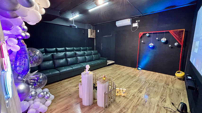 Step into Grandeur, our spacious 15-seater private theatre, designed for big celebrations and unforgettable movie experiences. Perfect for birthdays, family get-togethers, or binge-watch marathons, it combines luxury with comfort.